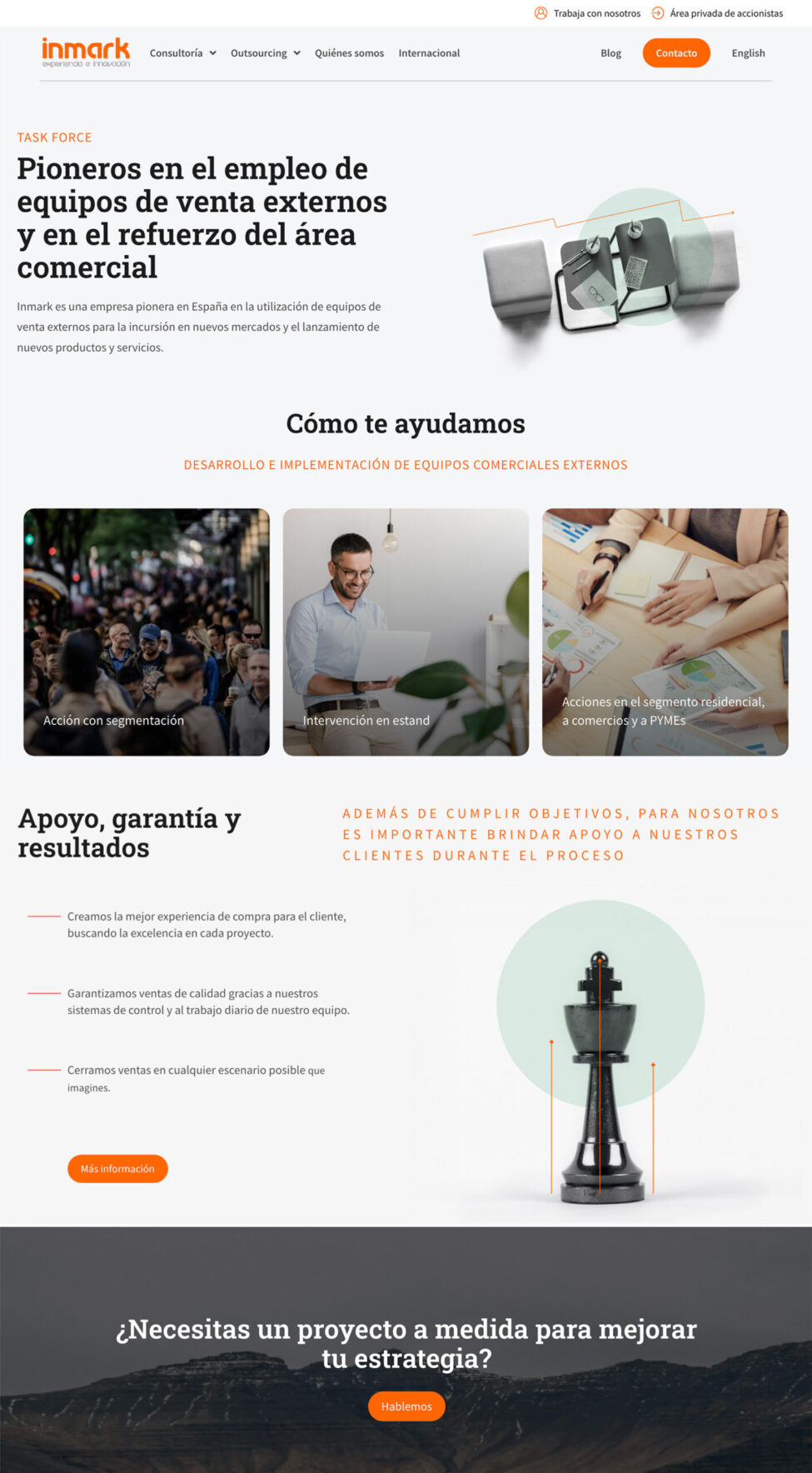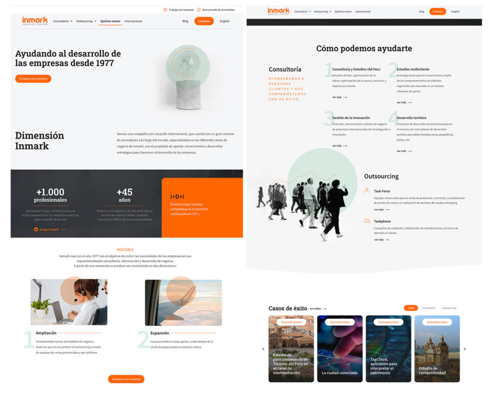 Web de consultora y desarrollo de negocio que proporciona información a las organizaciones para mejorar su posicionamiento en el mercado y el incremento de sus ventas.