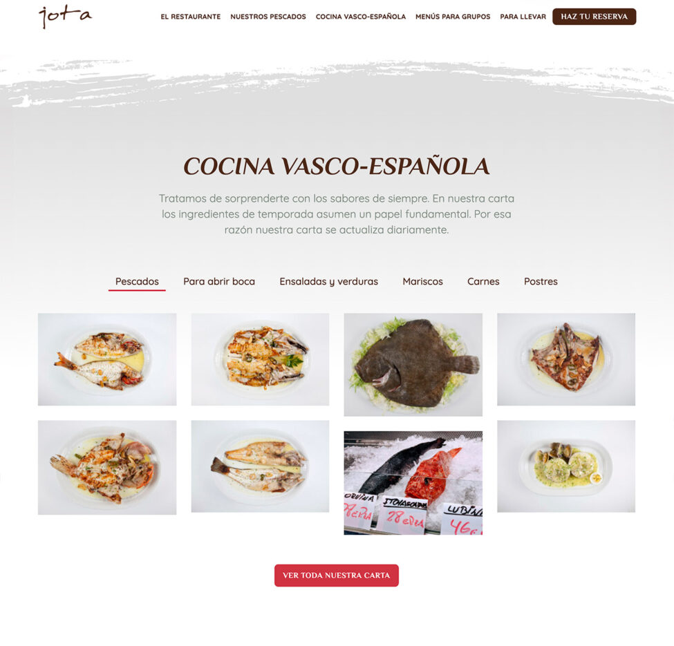 Onepage desarrollada en WordPress de restaurante de cocina vasza en el centro de Madrid. Tratamos de sorprenderte con nuestras propuestas diarias de pescados en piezas enteras para compartir. Lo elaboramos asado a la plancha y con nuestro refrito de ajo y piparra, presentado de una pieza al centro de la mesa.